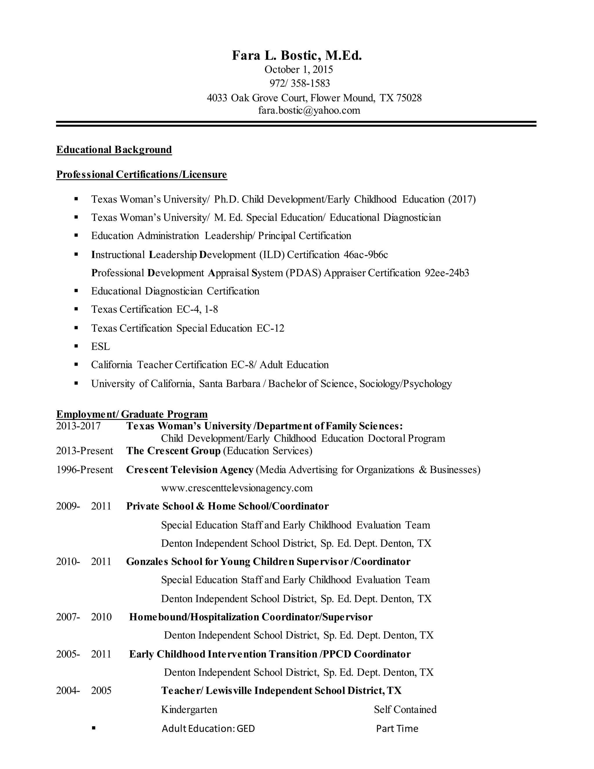 Fara House Bostic Resume Dec 2015 DOCX