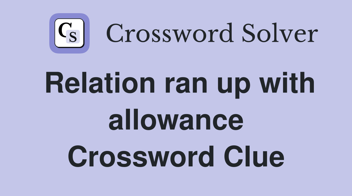 Relation ran up with allowance Crossword Clue Answers Crossword Solver
