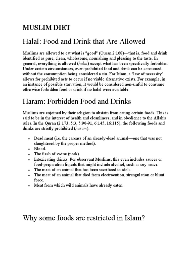 Guidelines for a Halal Diet: An Overview of Foods Allowed (Halal) and