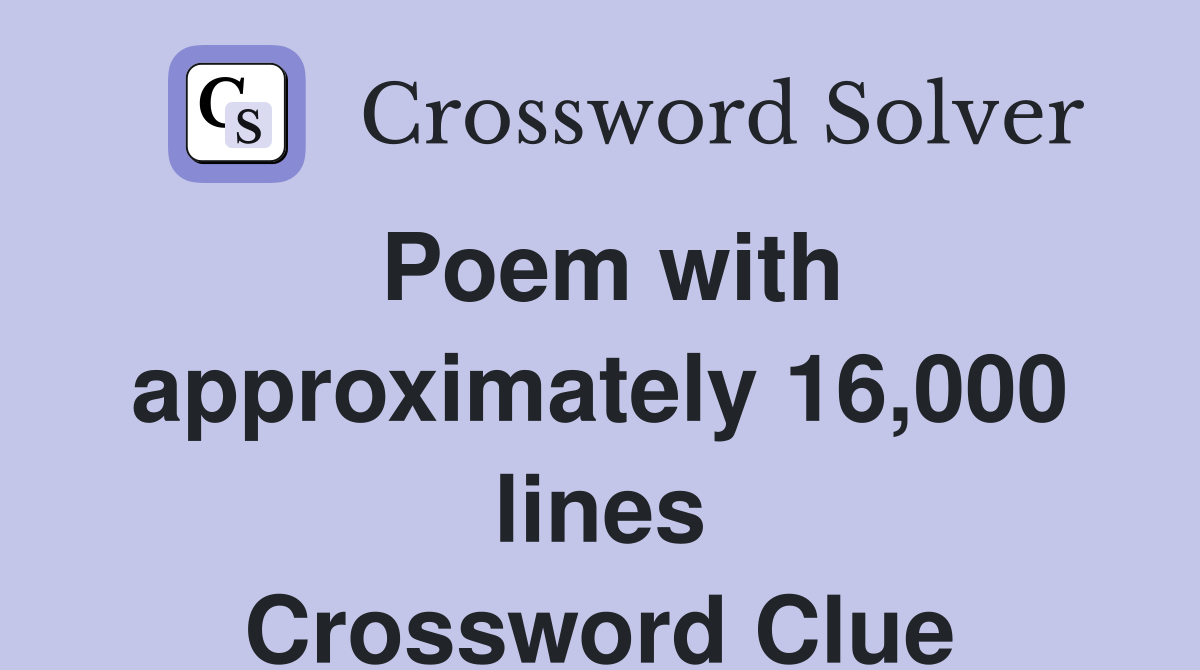 Poem with approximately 16 000 lines Crossword Clue Answers