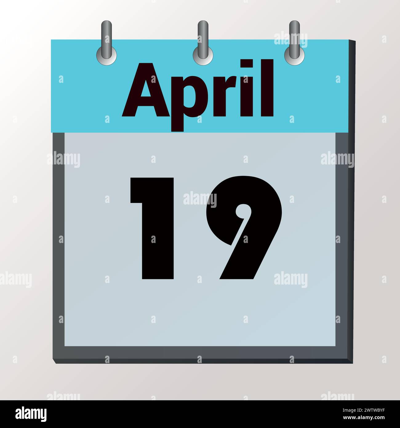 19th day of April 3d calendar with the date of 19 April on white