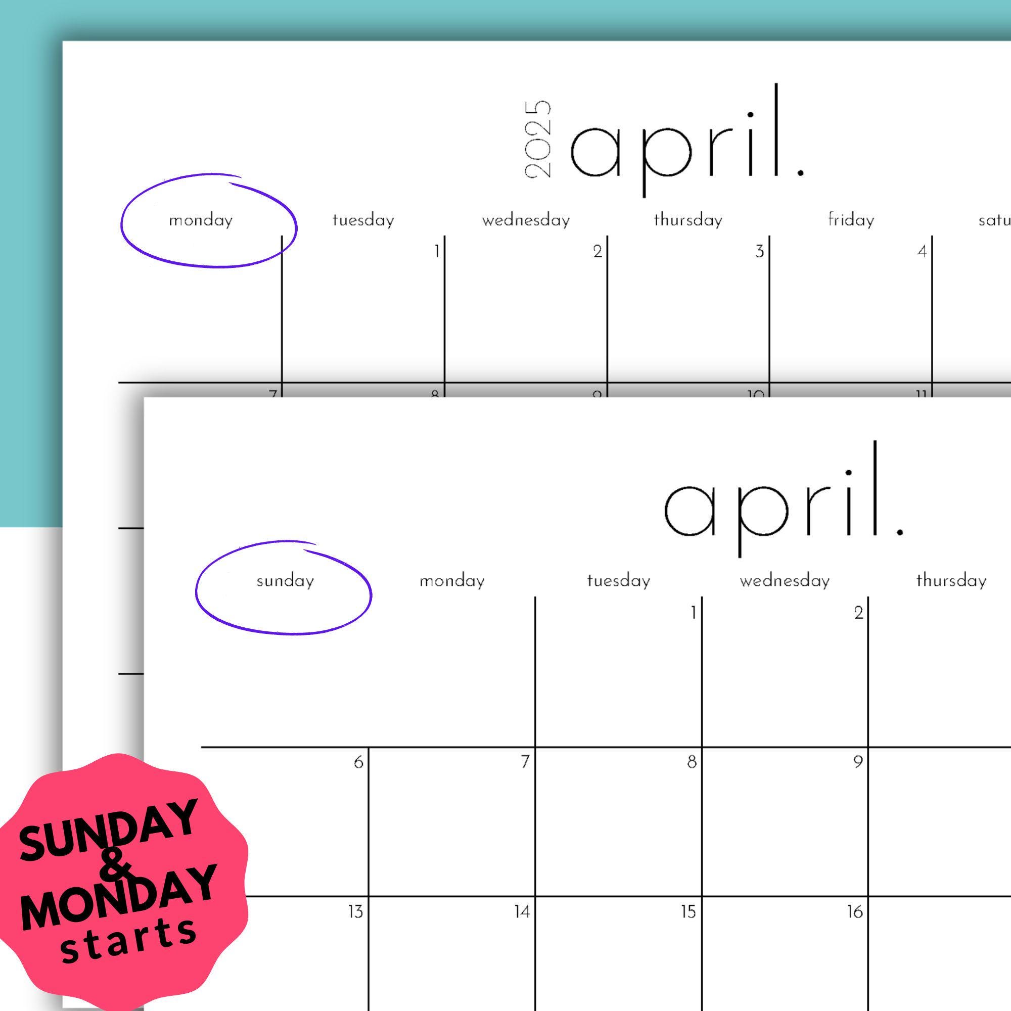 April 2025 Calendar Digital Printable Fillable With Sunday Monday