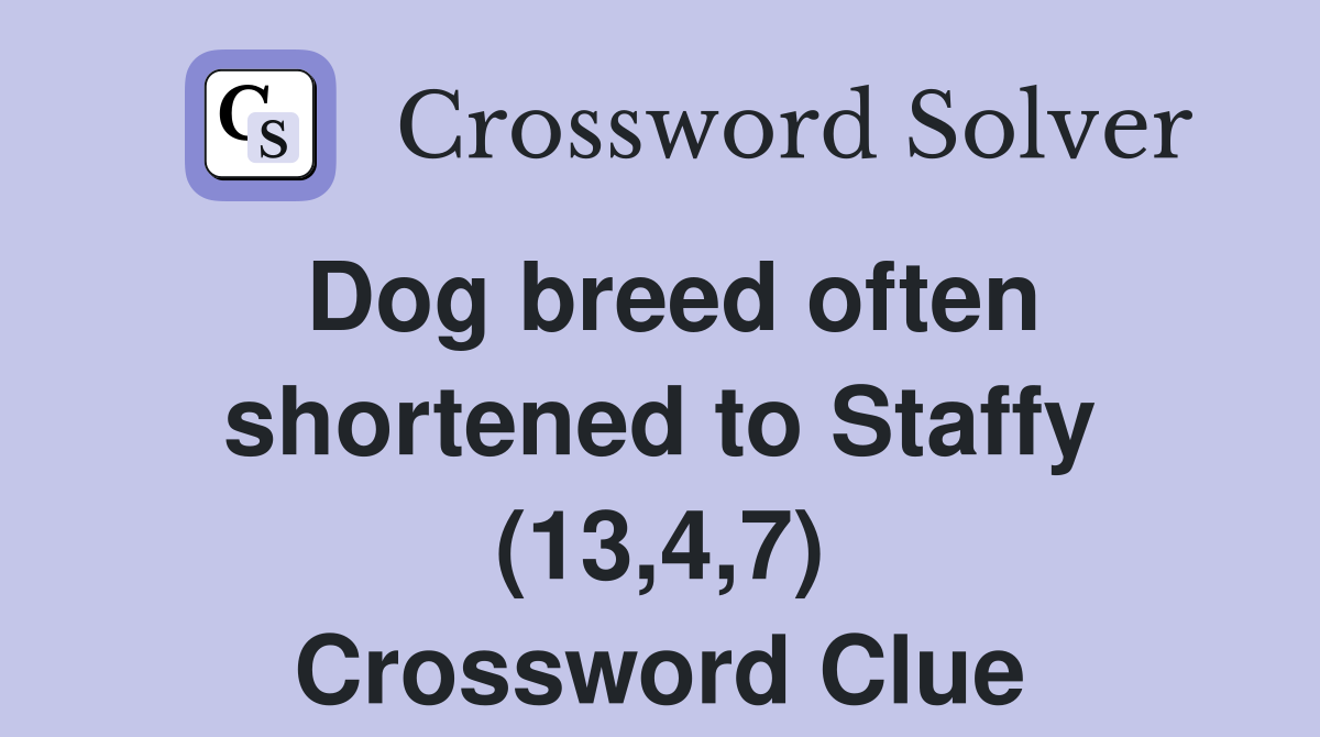 Dog breed often shortened to Staffy (13 4 7) Crossword Clue Answers