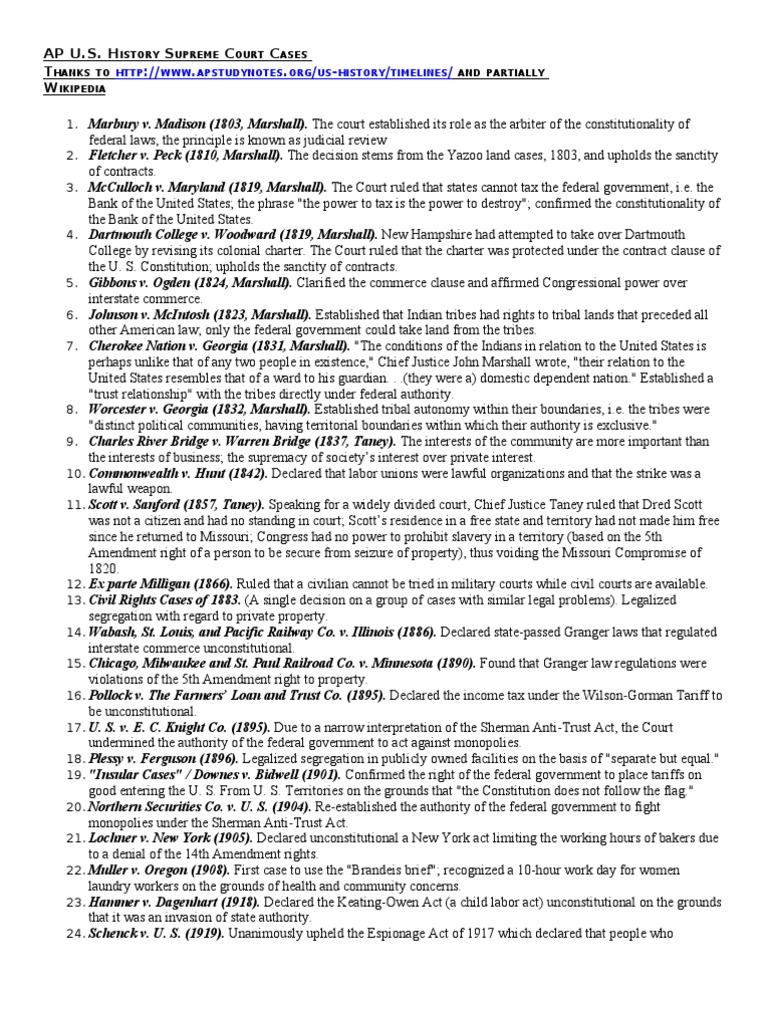 😎 Important court cases apush Key List of Supreme Court Cases 2019 02 15