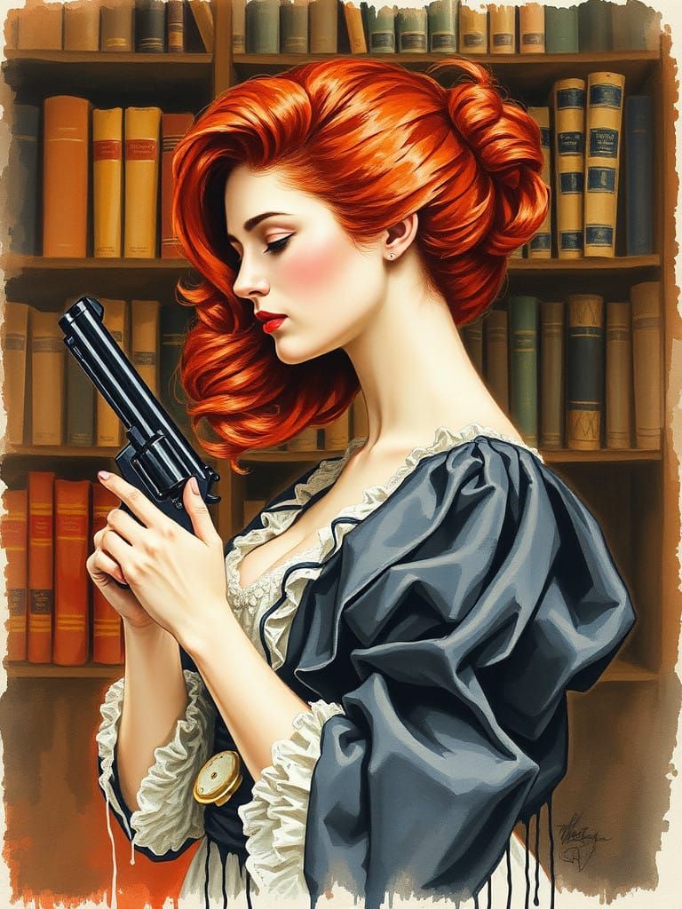 Aquarelle PROFILE Portrait Miss Scarlett In Library With Revolver