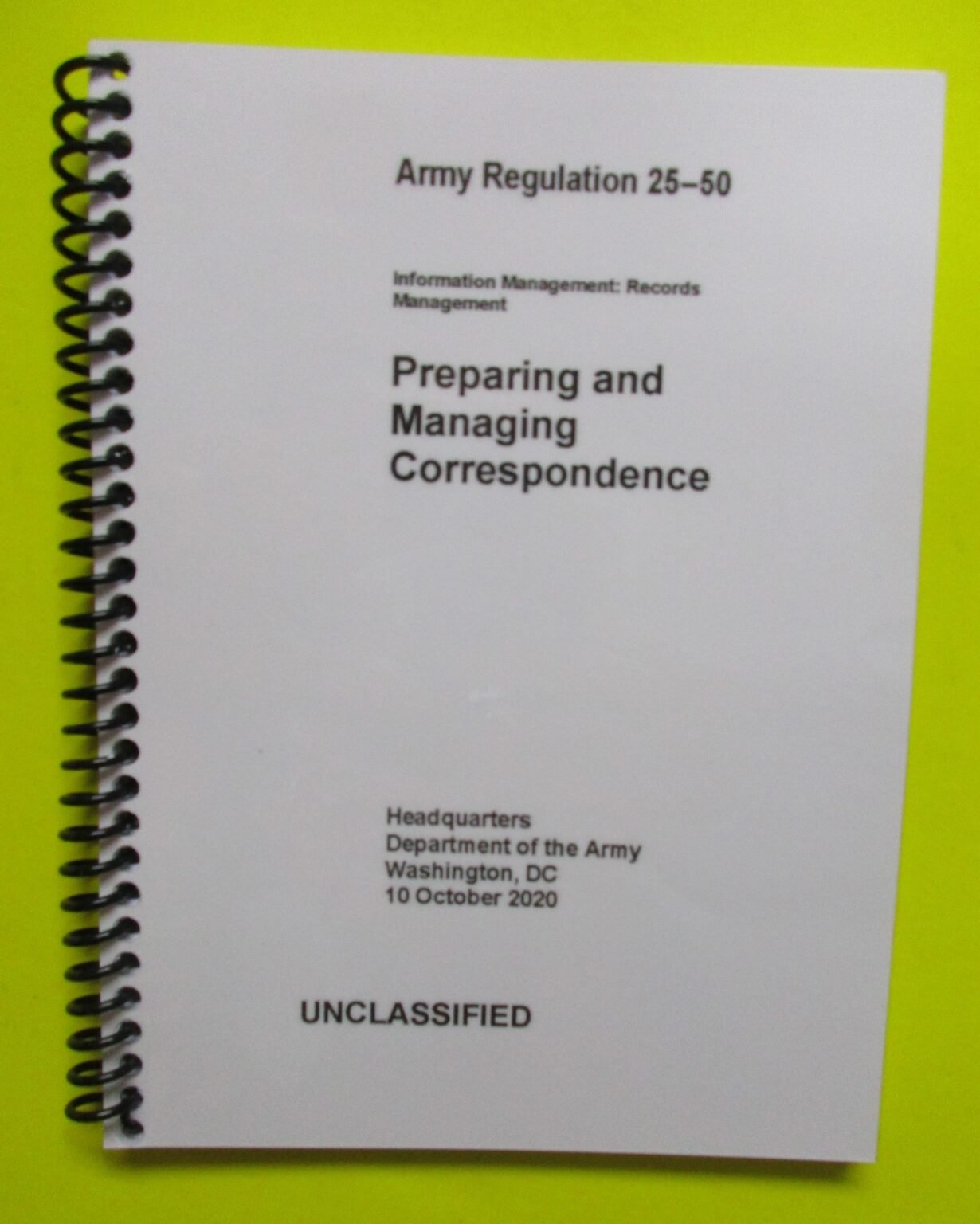 AR 25 50 Preparing and Managing Correspondence 2020 BIG size My