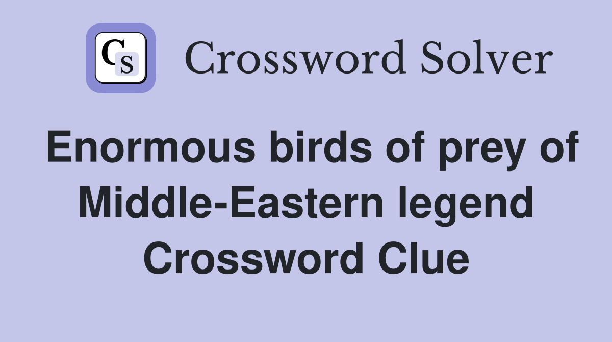 Enormous birds of prey of Middle Eastern legend Crossword Clue