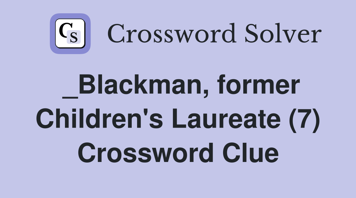 Blackman former Children #39 s Laureate (7) Crossword Clue Answers