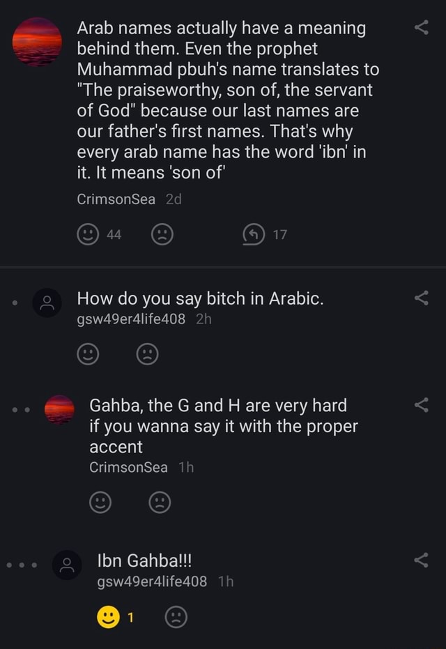 Arab names actually have a meaning behind them Even the prophet