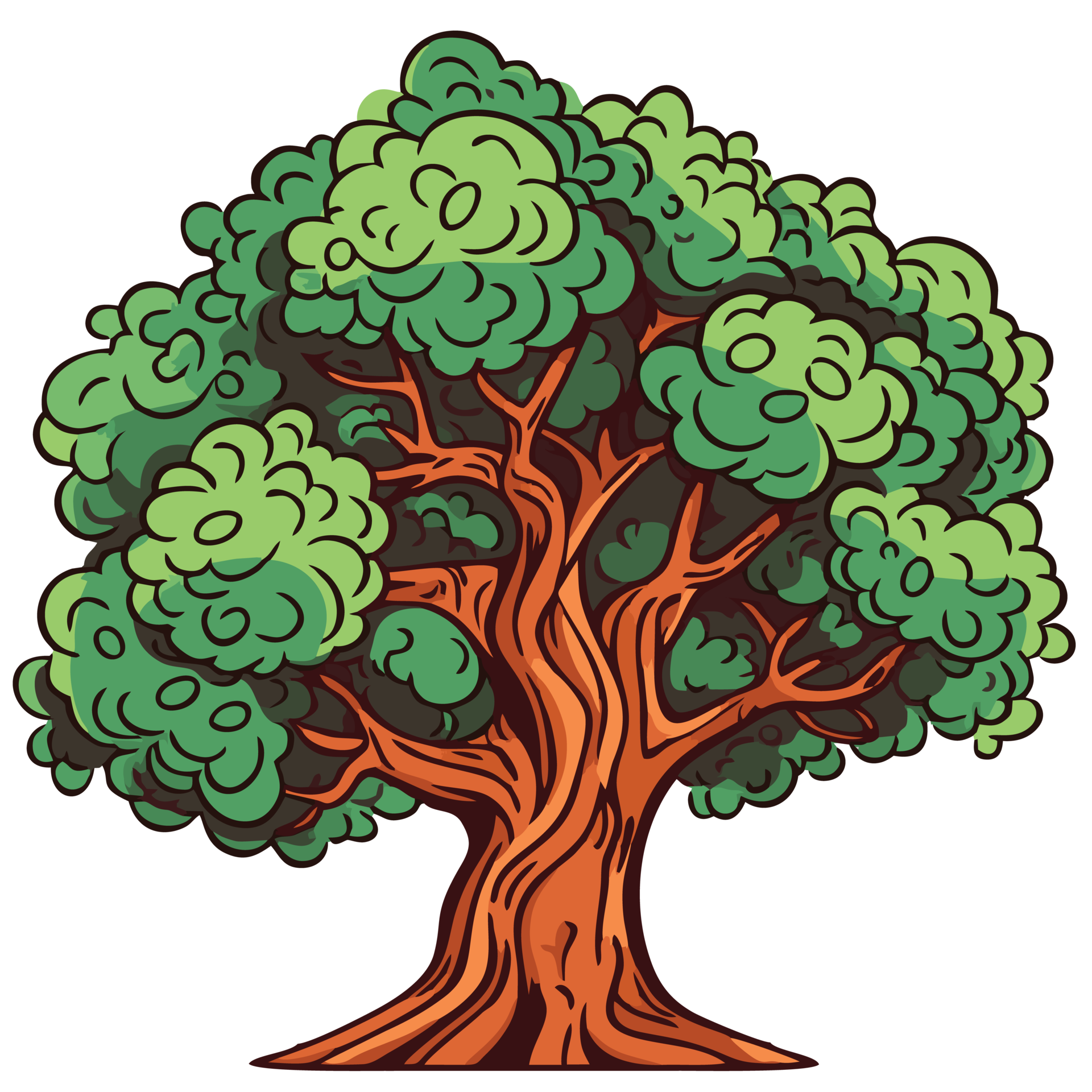 grande árbol aislado en transparente fondo dibujos animados estilo