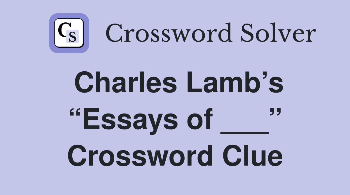 Charles Lamb s Essays of Crossword Clue Answers Crossword Solver