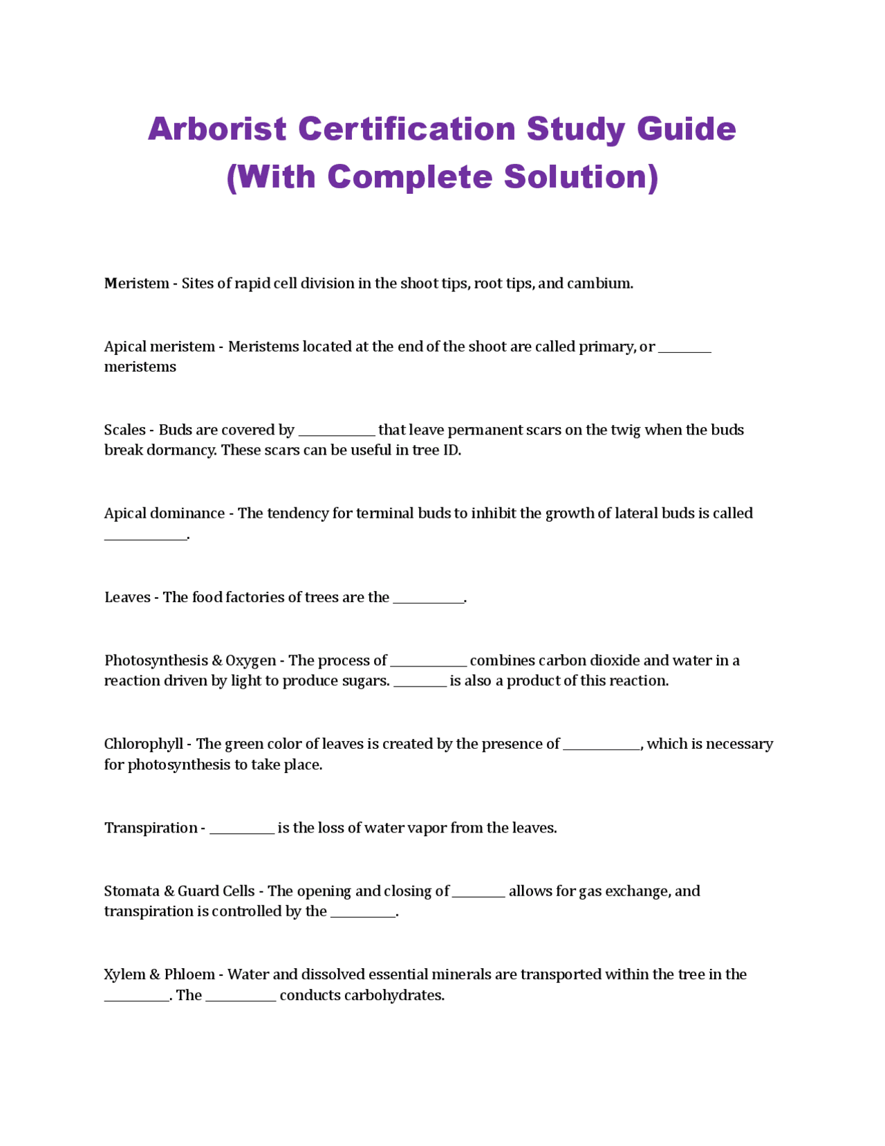 Arborist Certification Study Guide (With Complete Solution) Exams