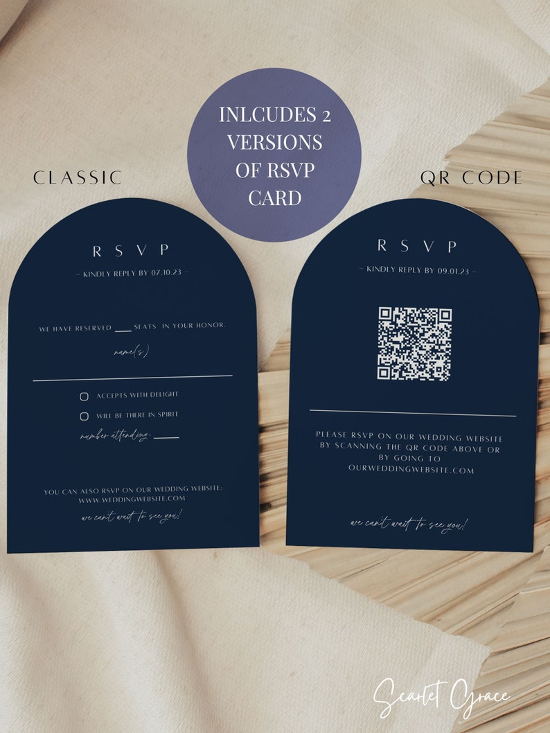 Arch Wedding Invitation Template Set Minimalist Wedding RSVP Card