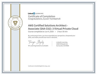 Certificate of Completion: Ultimate AWS Certified Solutions Architect