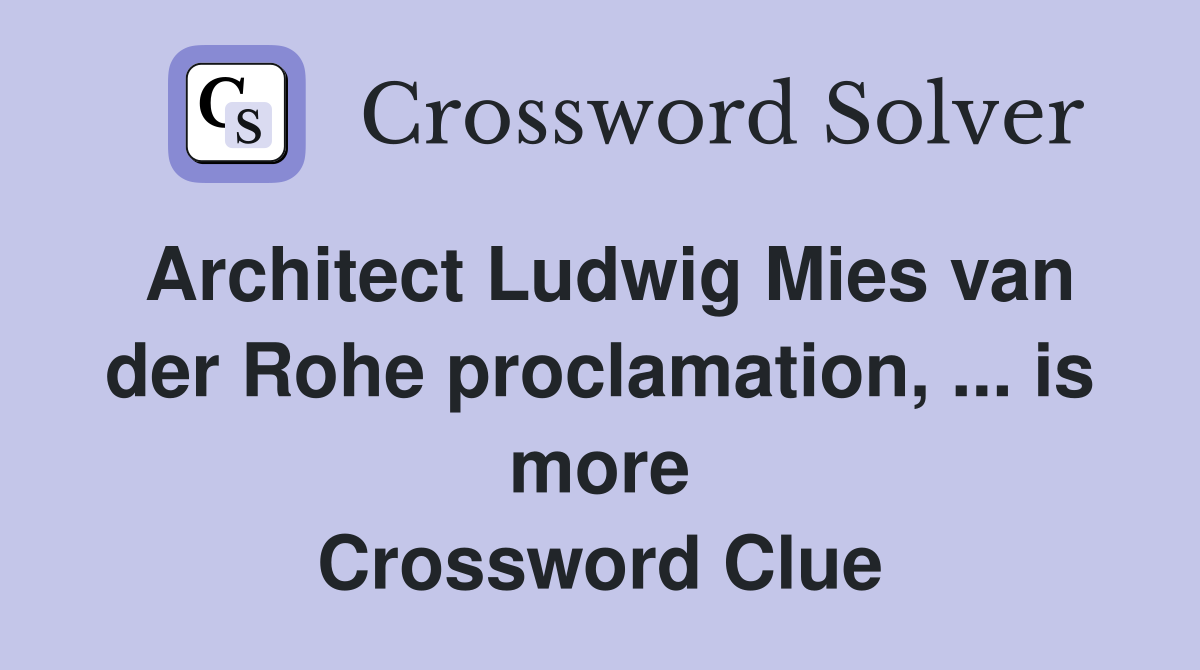 Architect Ludwig Mies van der Crossword Clue NYT Crossword Answers