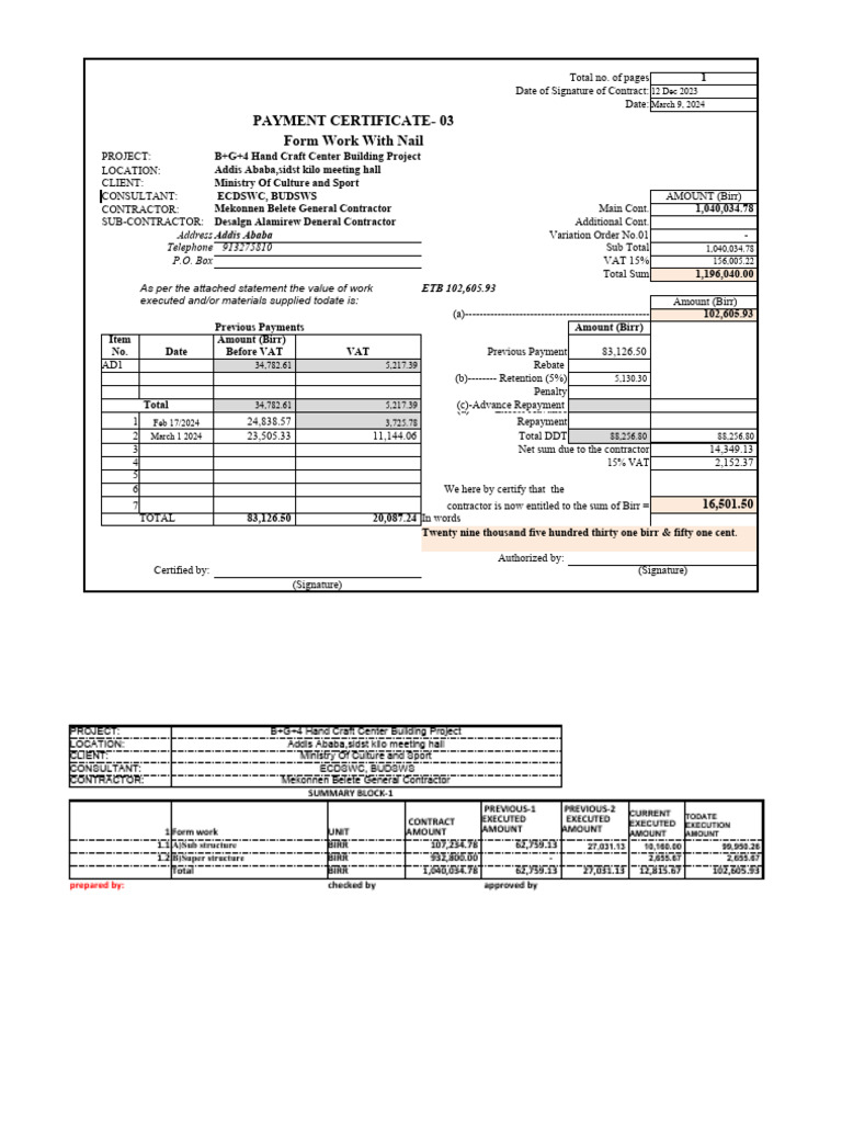 Payment Certificate 03 Form Work With Nail PDF Architectural Design