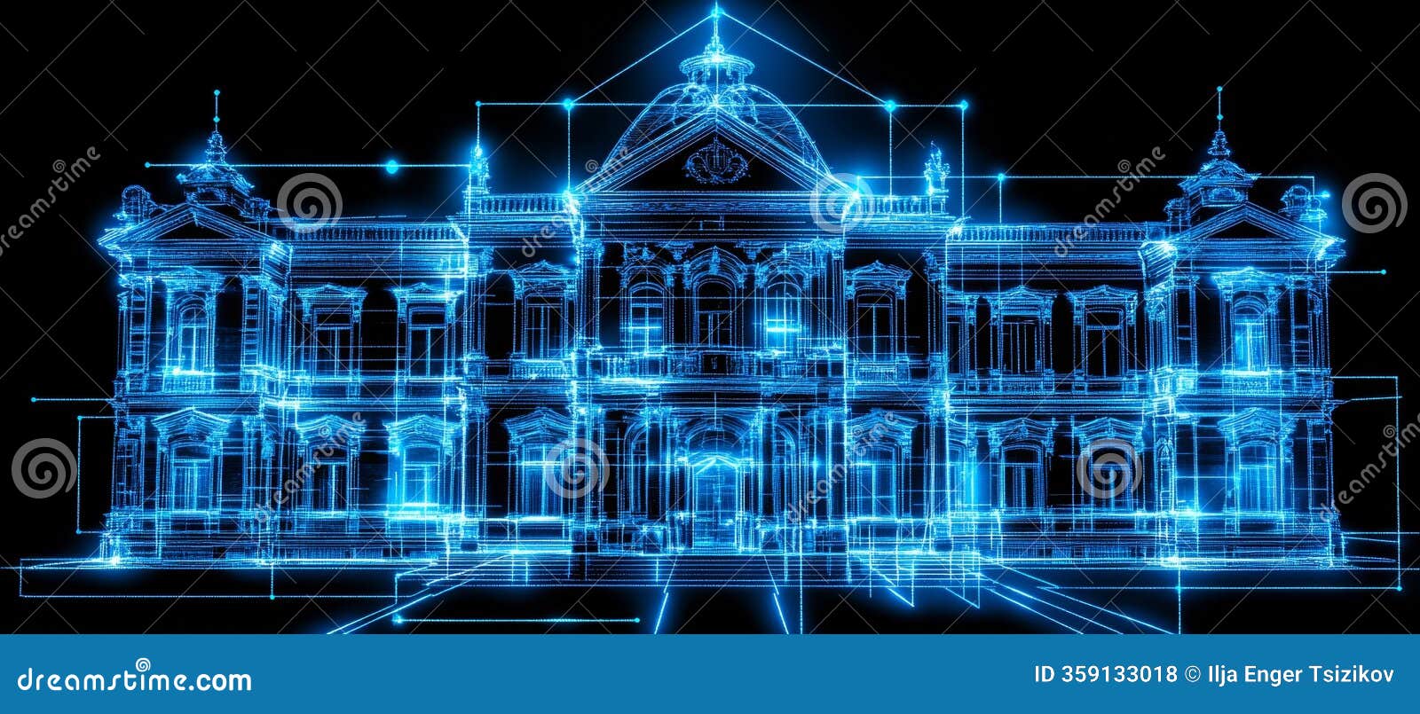 Blueprint of History a Digital Rendering of a Grand Architectural