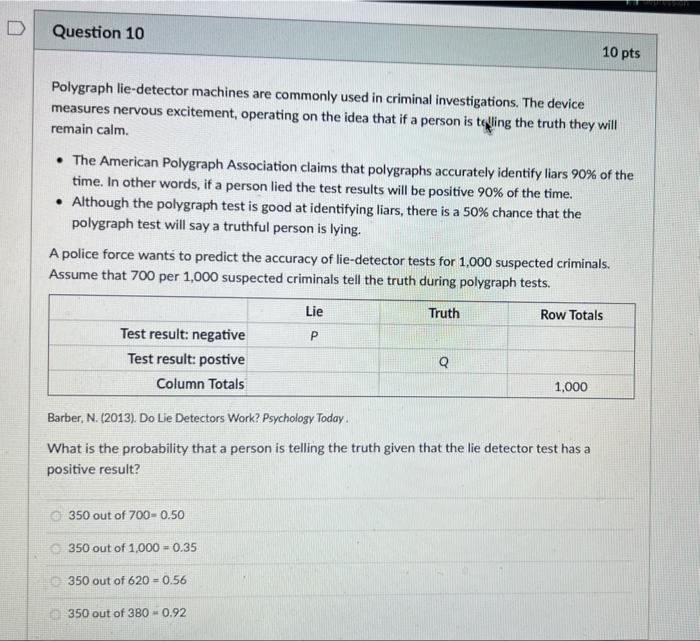 Solved The question of the accuracy of quot lie detectors quot Chegg com