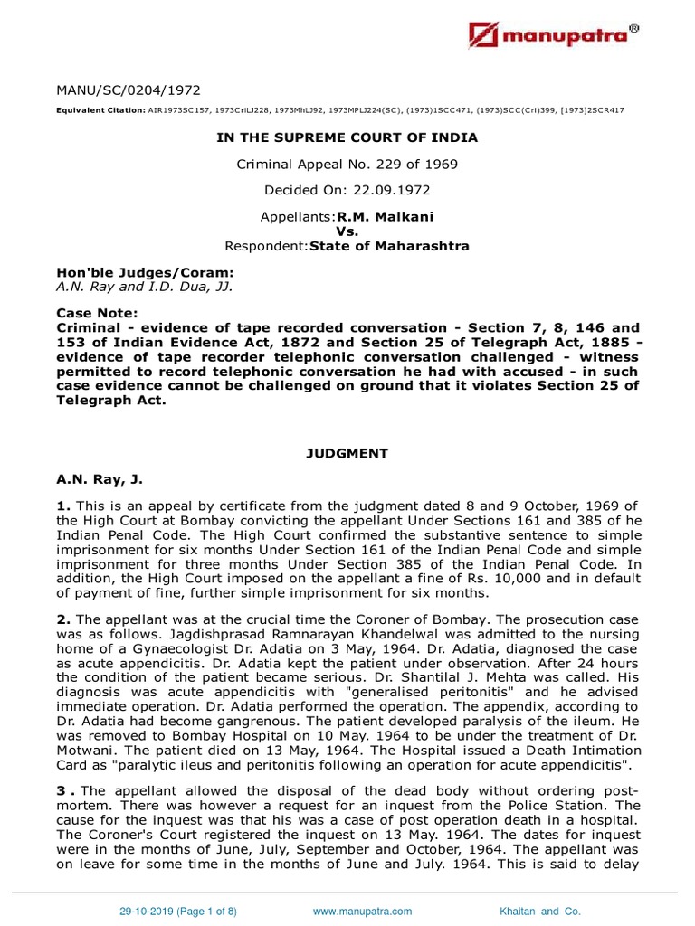 Can illegally recorded evidence be admissible in court ? R M Malkani