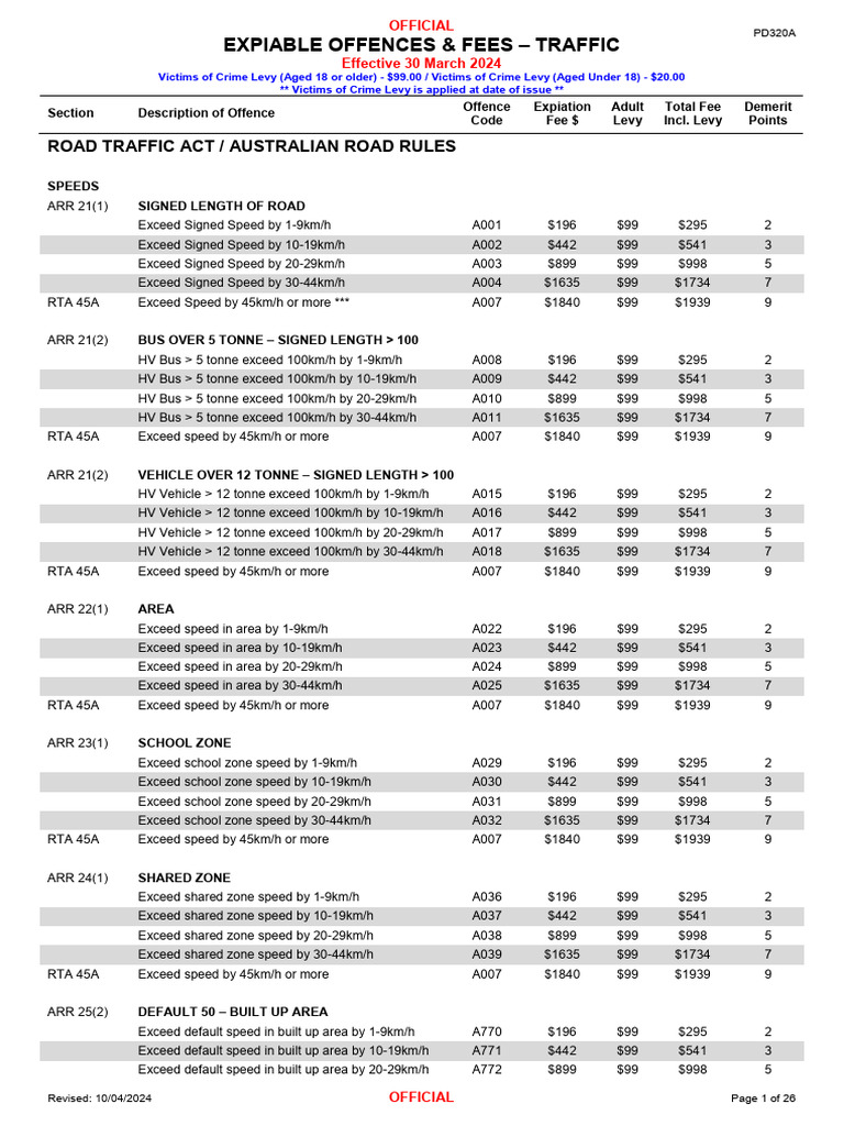 PD320A Expiable Offences and Fees Traffic PDF Intersection (Road