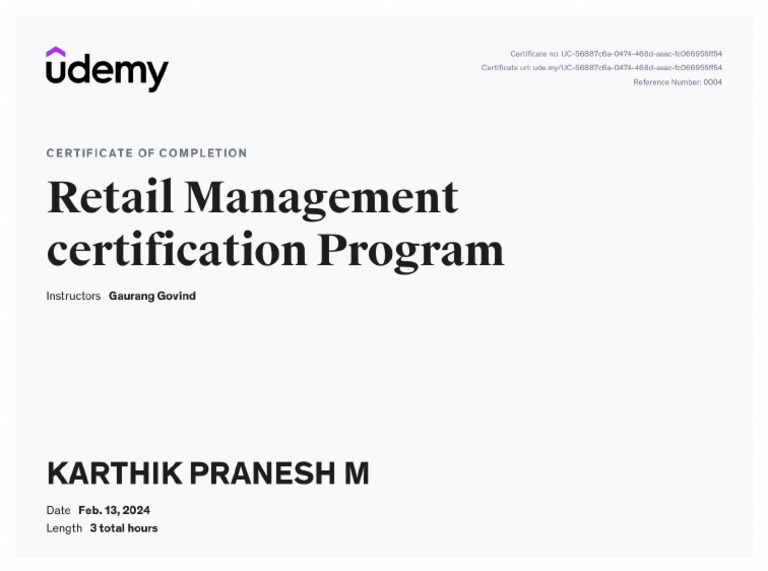 UDEMY Certificate PDF