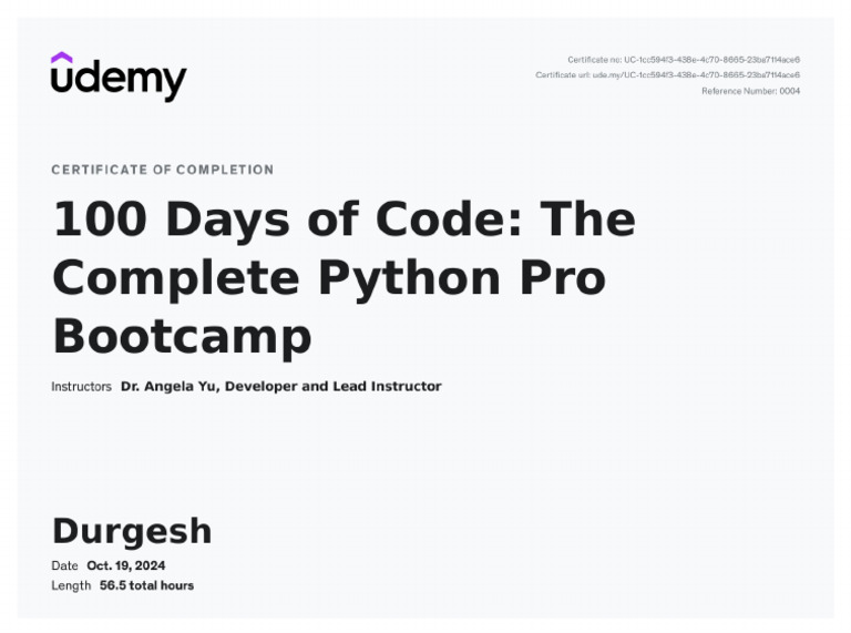 UDEMY Python Certificate PDF