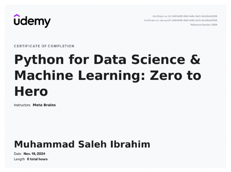 Udemy certificate PDF