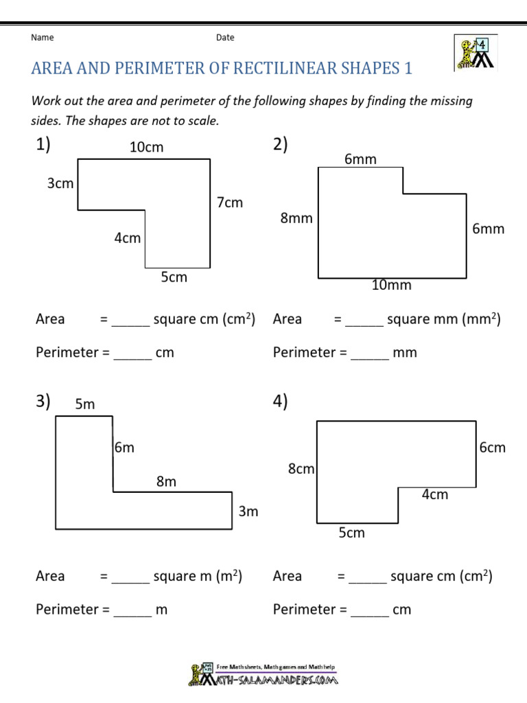 Area and perimeter of irregular shapes worksheets Math Worksheets