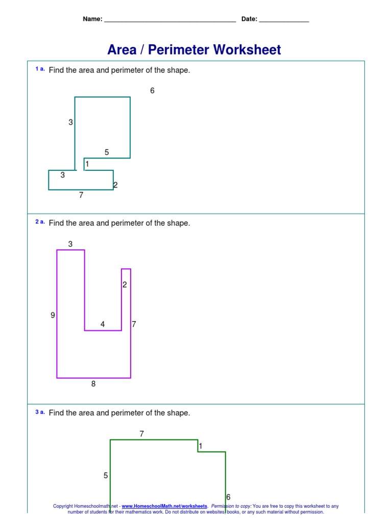 Finding Area and Perimeter of Irregular shapes Math Worksheets