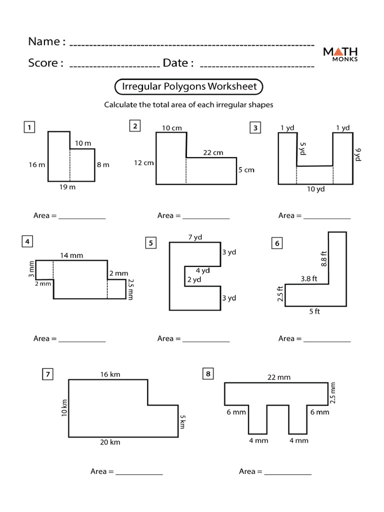 Area Of Irregular Shapes Worksheet Printable PDF Template