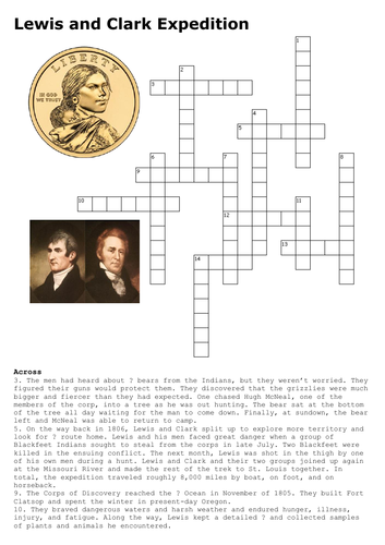 Lewis and Clark Crossword Puzzle Teaching Resources