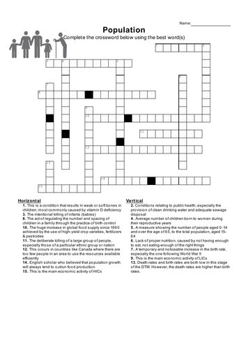 POPULATION Crossword Puzzle w/ answer key (version 2) (Cambridge A