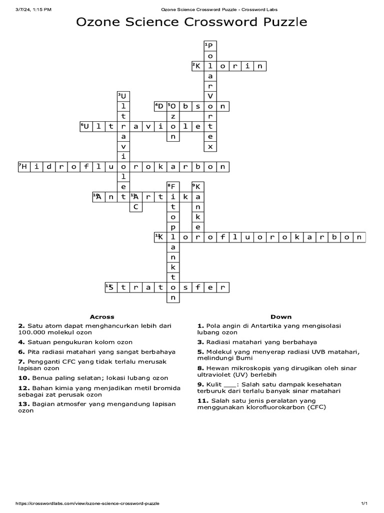 Ozone Science Crossword Puzzle Crossword Labs Answer PDF
