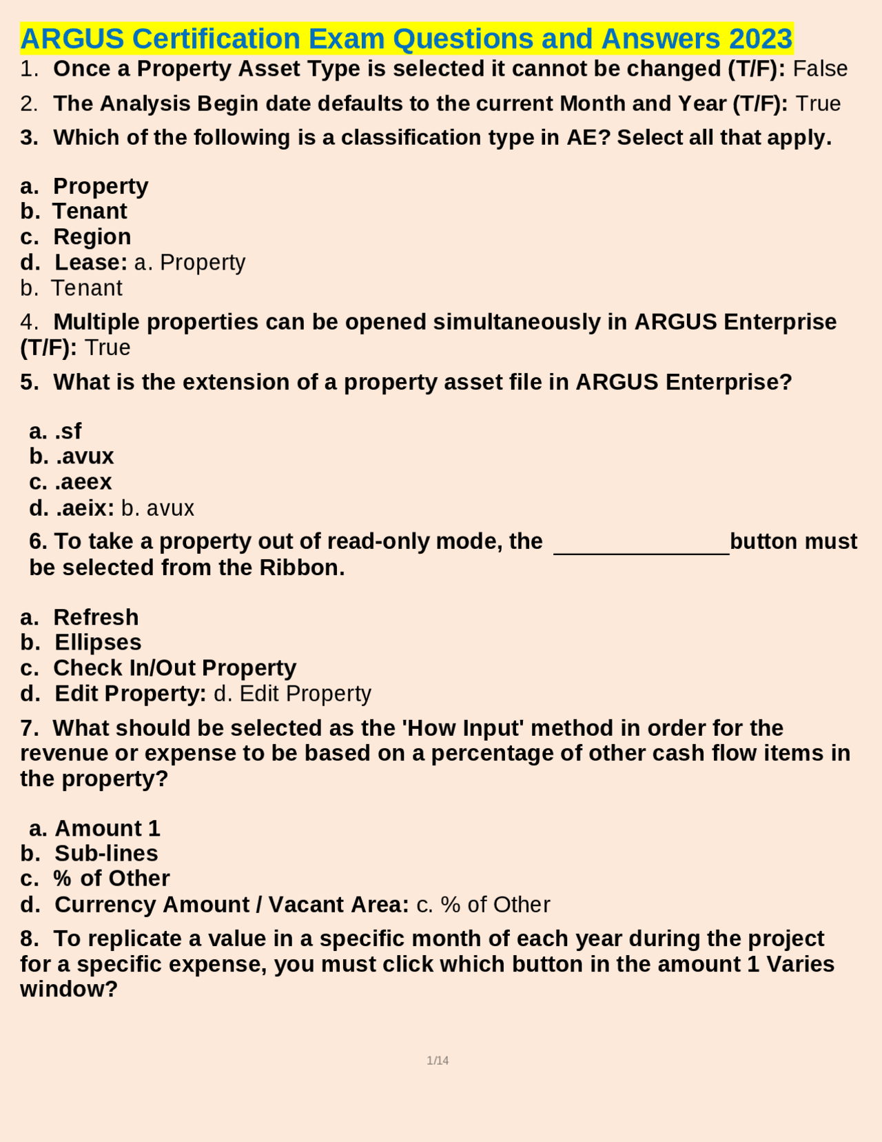 ARGUS Enterprise Certification Exam Review updated 2024 ARGUS