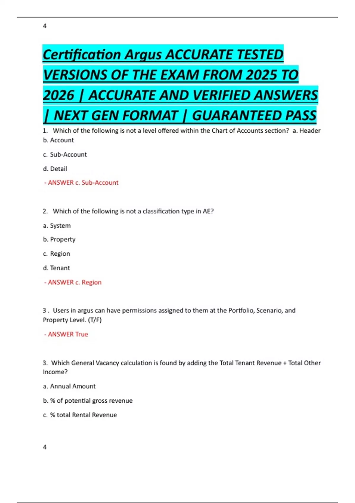 ARGUS Certification Exam VERIFIED 100% SOLUTIONS ARGUS Stuvia US