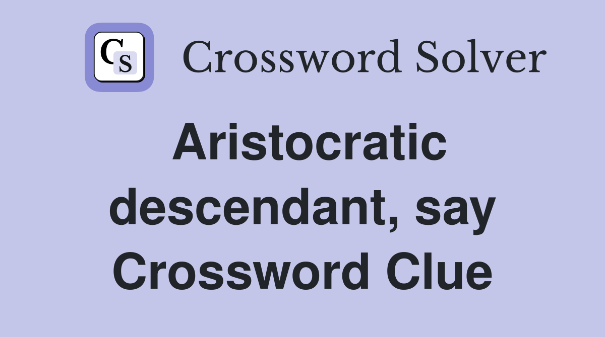 Aristocratic descendant say Crossword Clue Answers Crossword Solver