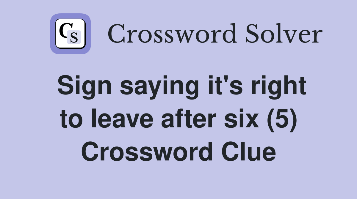 Sign saying it s right to leave after six (5) Crossword Clue Answers