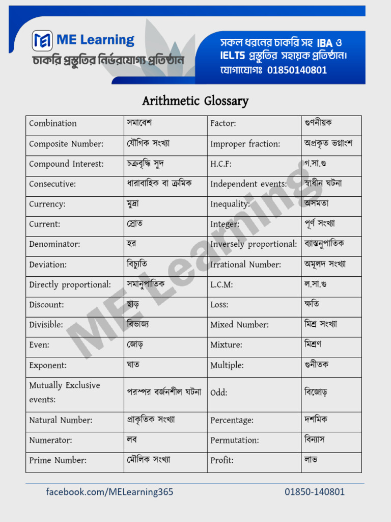 Arithmetic Terms PDF