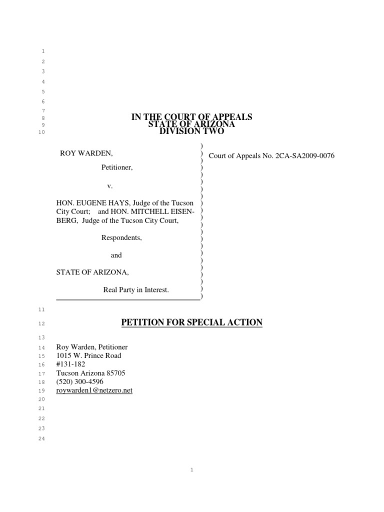 Warden Petition For Special Action To The Arizona Court of Appeals