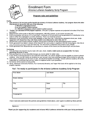 Fillable Online Scrip Enrollment Form Arizona Lutheran Academy Fax