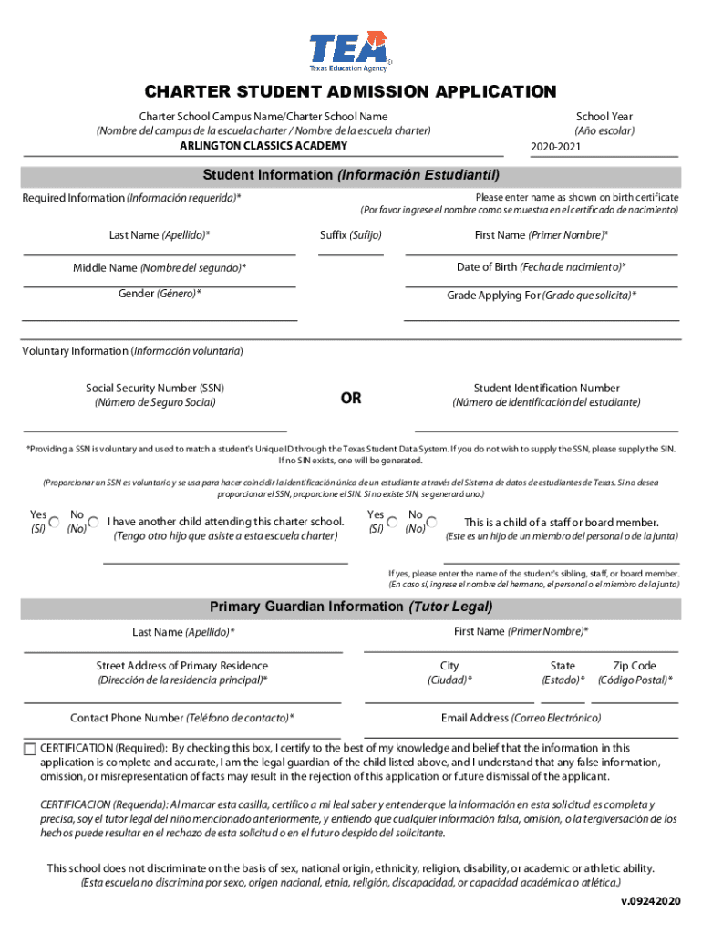 Completable En línea ARLINGTON CLASSICS ACADEMY Fax Email Imprimir