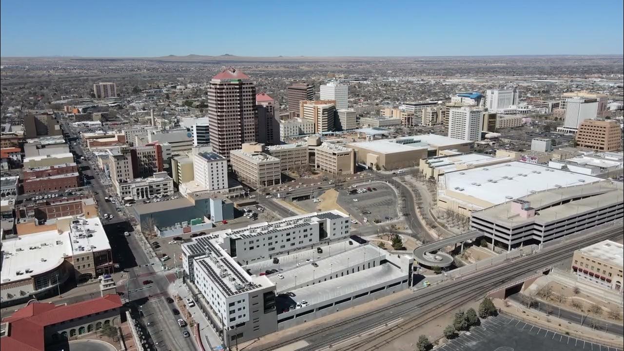 5 7K aerial video of the Albuquerque Plaza office building Downtown