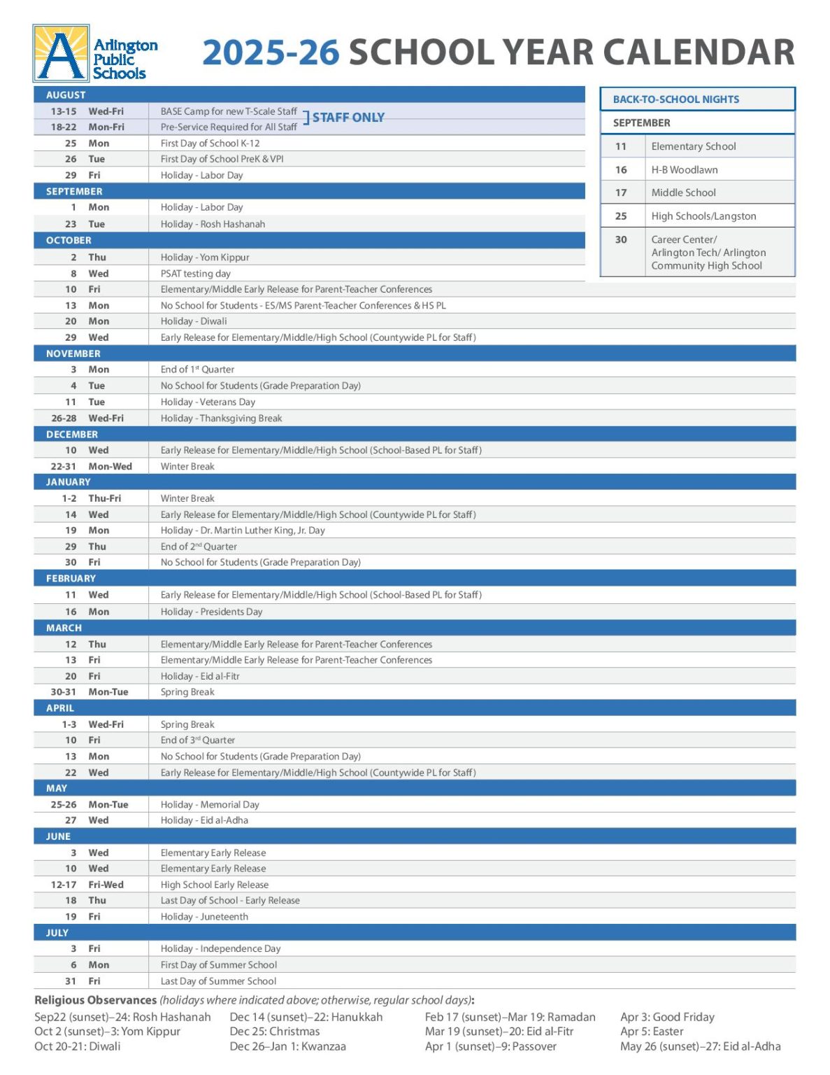 Arlington Public Schools Calendar For 2025 2026: Key Dates To Know