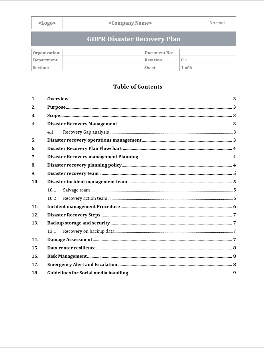 GDPR Disaster Recovery Plan Template IT Governance Docs