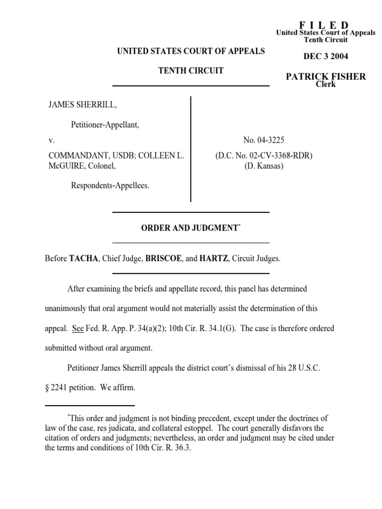 Sherrill v Commandant USDB 10th Cir (2004) PDF United States