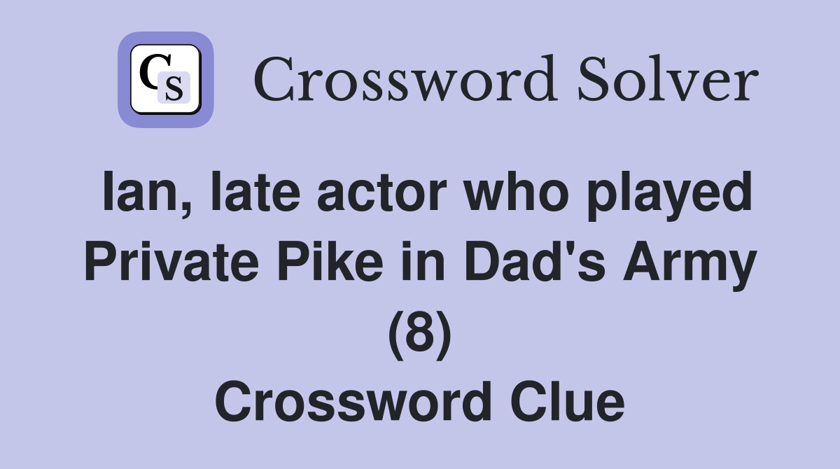 Ian late actor who played Private Pike in Dad #39 s Army (8) Crossword