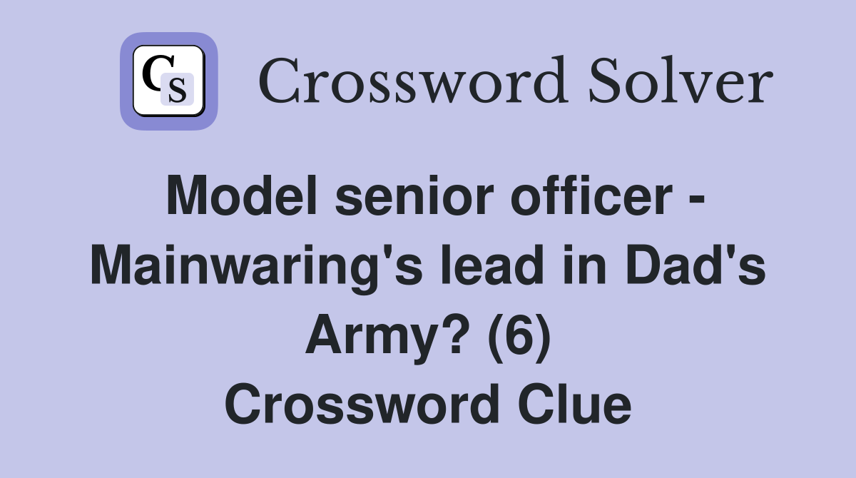 Model senior officer Mainwaring s lead in Dad s Army? (6) Crossword