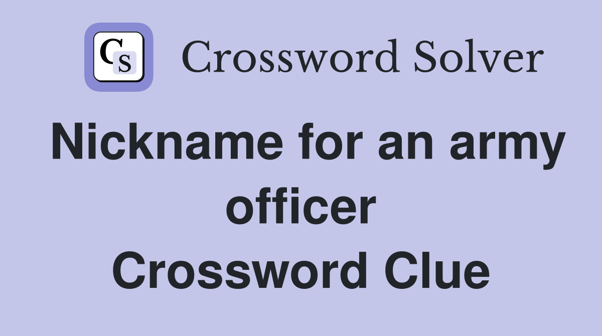 Nickname for an army officer Crossword Clue Answers Crossword Solver
