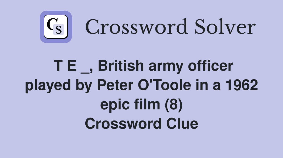 T E British army officer played by Peter O Toole in a 1962 epic film