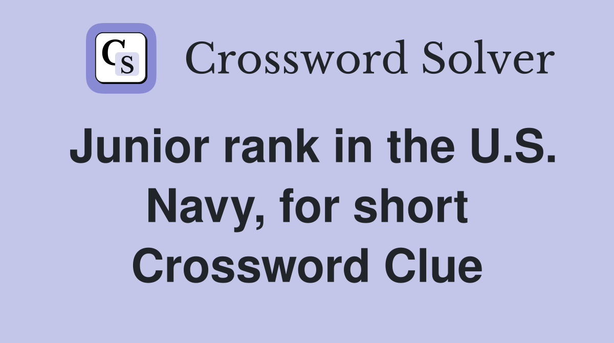 Junior rank in the U S Navy for short Crossword Clue Answers